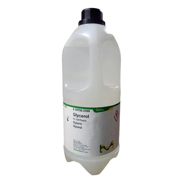 Glycerin (Glycerol) 2.5L – Merck Germany. High-purity Glycerin / Glycerol from Merck Germany, supplied in a secure 2.5 Liter laboratory-grade container. Suitable for chemical synthesis, pharmaceutical, cosmetic, food, and research applications.