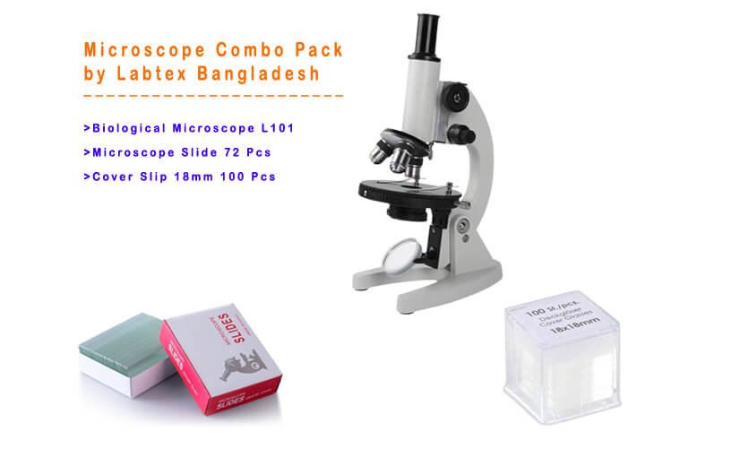 Labtex Bangladesh Offers the Student Microscope Combo Pack, including 1 Pcs Monocular Microscope L101, 72 Pcs Glass Slide, and 100 Pcs Cover Glass.