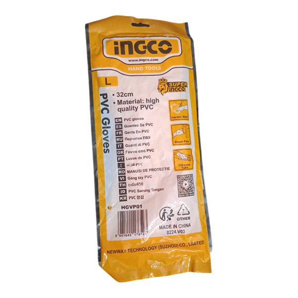 The INGCO PVC Hand Gloves (32cm) are heavy-duty, chemical-resistant gloves designed to protect your hands during industrial, household, and professional work. Made from premium-quality PVC, these gloves provide excellent durability, flexibility, and long-lasting performance. Whether you are handling chemicals, cleaning, gardening, or working in oily environments, these gloves ensure maximum protection and comfort.